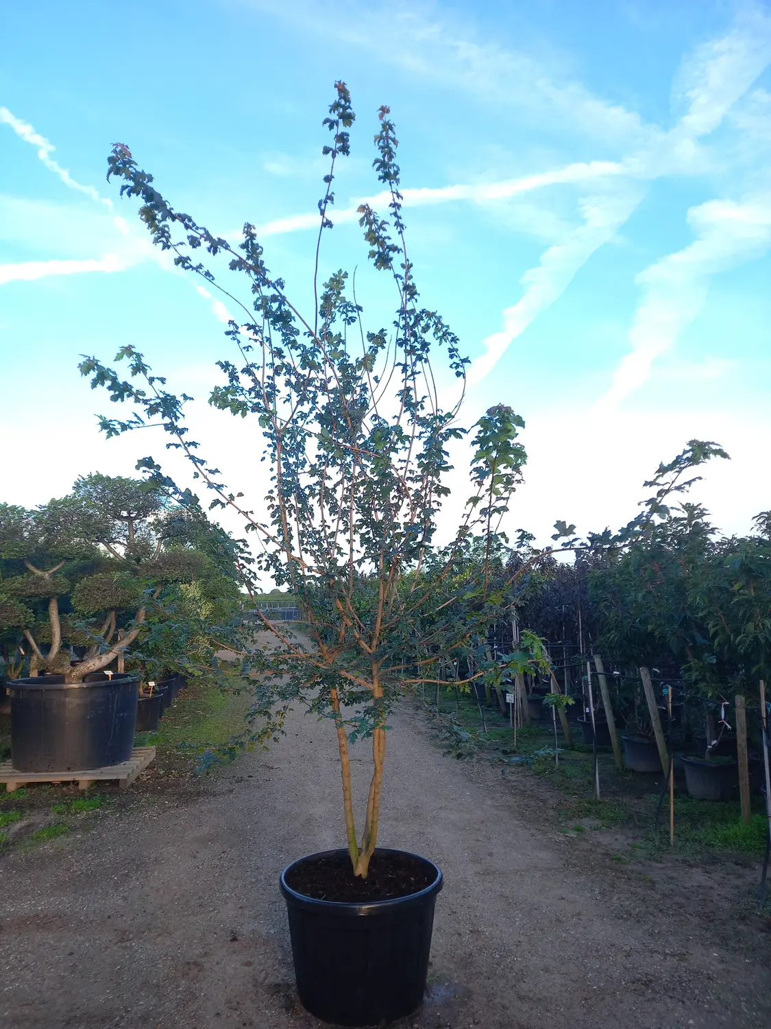 Acer Campestre is one of the most adaptable native European maples and is widely grown in several forms depending on the intended use. While Acer Campestre Multi-stem offers a natural, sculptural form ideal for landscape planting, the species is also commonly available as a standard single-stem tree for avenues and hedging. Gardeners seeking a compact alternative may choose the dwarf cultivar Acer Campestre Nanum, while Acer Campestre Elsrijk is a refined Dutch selection valued for its strong upright growth and urban tolerance. For formal settings, pleached forms of Field Maple are often used to create living screens or structured garden architecture. The multi-stemmed version provides a softer, more natural option while retaining the resilience and adaptability that make Acer Campestre such a popular landscape tree.