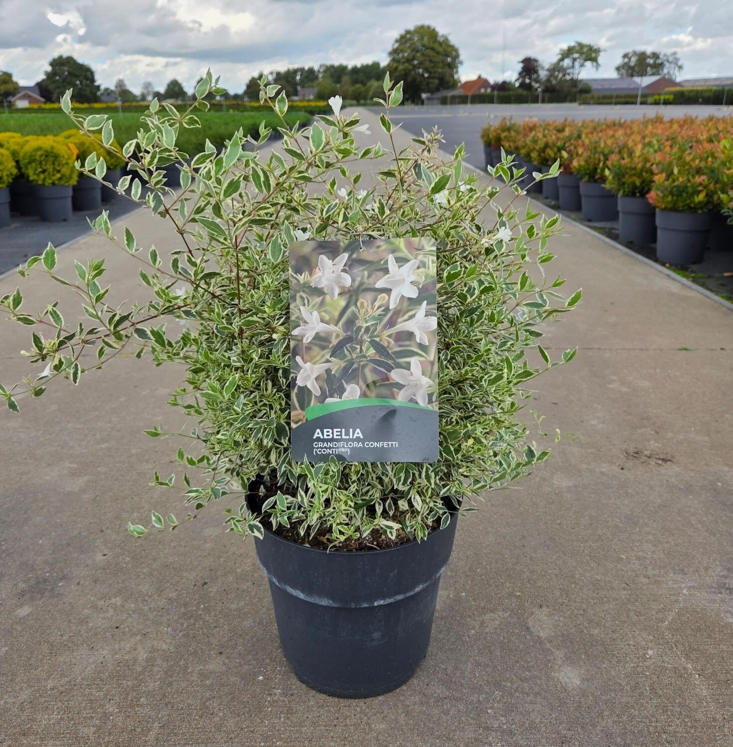 A dwarf variety, Abelia Confetti will stay compact even when it is fully mature. Over a period of 10 years, this shrub will achieve a maximum height of 50 centimetres to 1 metre and a maximum width of 1 to 1.5 metres.