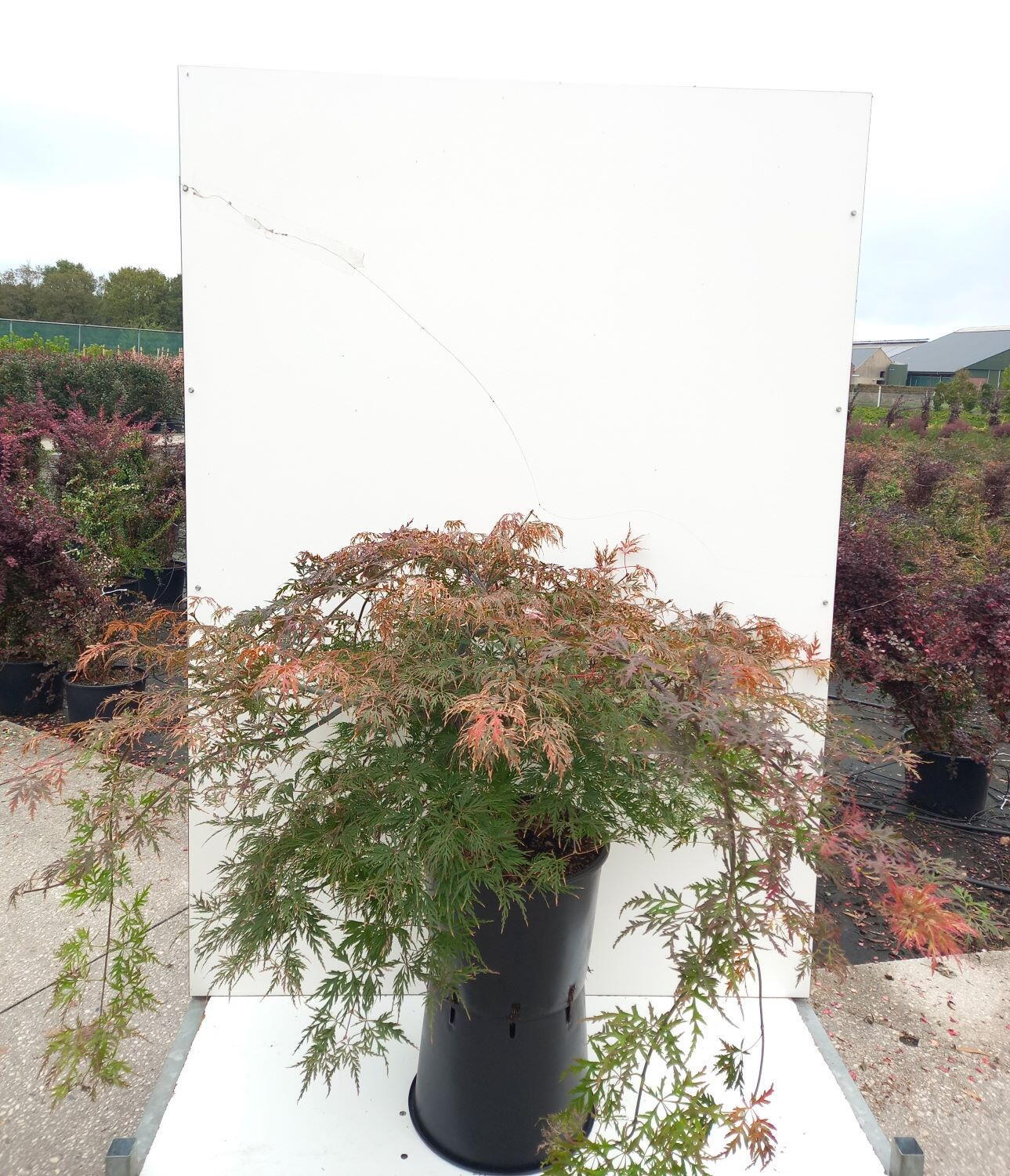 Acer Palmatum Dissectum Orangeola or Orangeola Japanese Maple, a stunning, small-sized Japanese maple, that will bring its delicate growth habit and brilliant colour to your garden. It has received the RHS Award of Garden Merit.