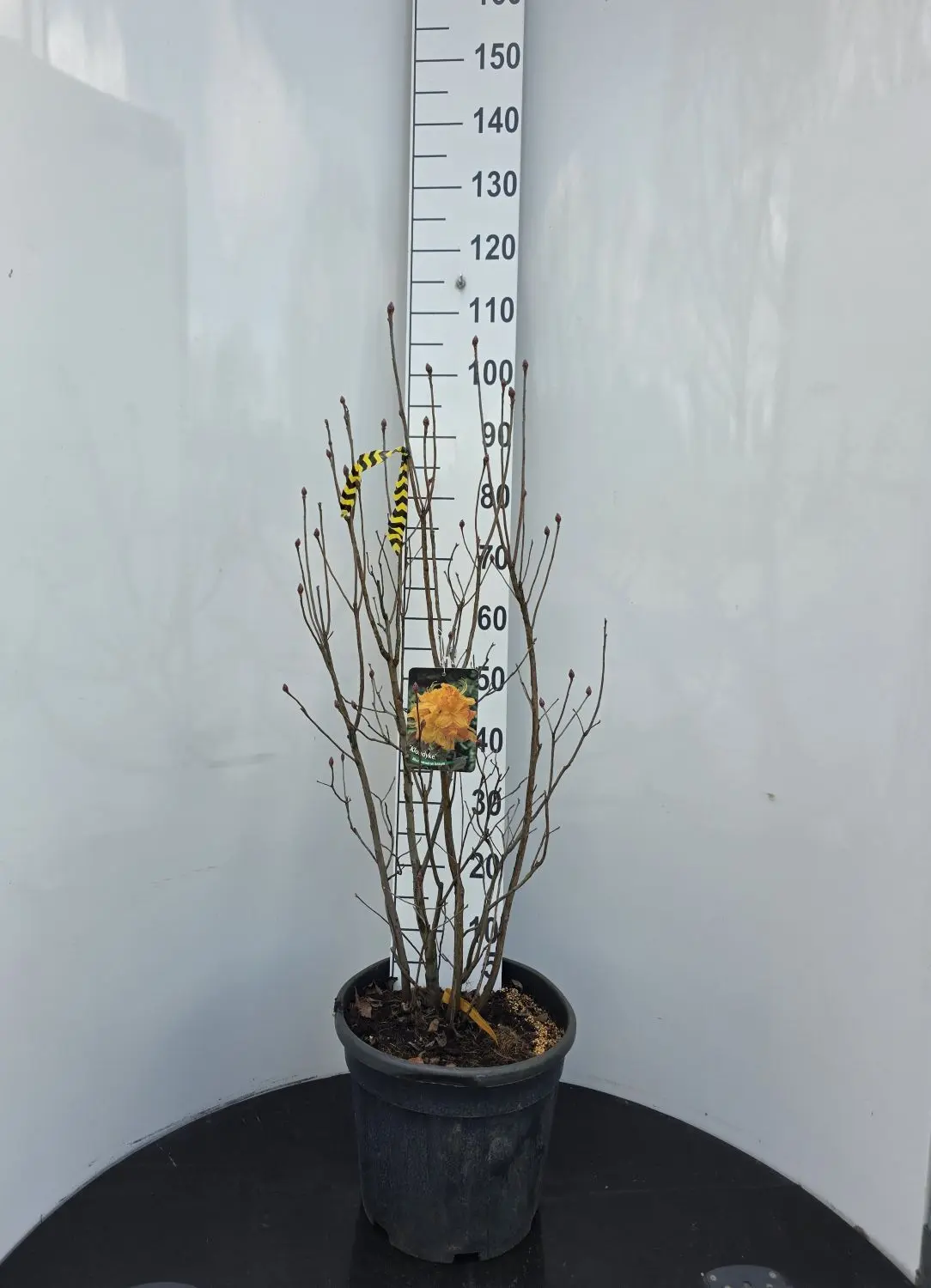Azalea Gibraltar is a Knaphill (Exbury) azalea hybrid. It is a deciduous, medium sized azalea hybrid with mid green foliage and deep crimson buds opening to deep orange flowers flushed with red and a yellow flare. This beautiful Azalea Gibraltar will give fantastic bloom in late spring early summer. It is an extremely prolific bloomer and one of the most popular of the deciduous azaleas.