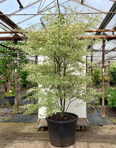 Cornus alternifolia Argentea grows best in sun to semi-shade, with a well-drained acidic soil rich in organic matter with medium moisture. It needs little or no pruning, as its natural shape is part of its attractive appearance.