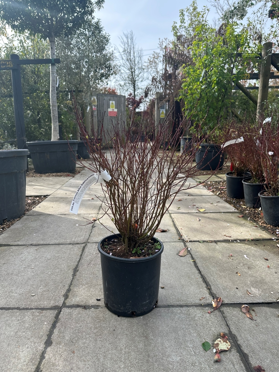 View plant size:Cornus Alba Sibirica also known as Siberian Dogwood is a popular tree or shrub and a real winter pleasure. It has one of the brightest barks in winter, as it blazes with vivid red colour when exposed to the sun. Siberian Dogwood is not fussy about soil and is easy to cultivate and maintain. The previous season’s vivid growth is cut back each year to form a thicket of crimson stems that naturally expands by layering.
