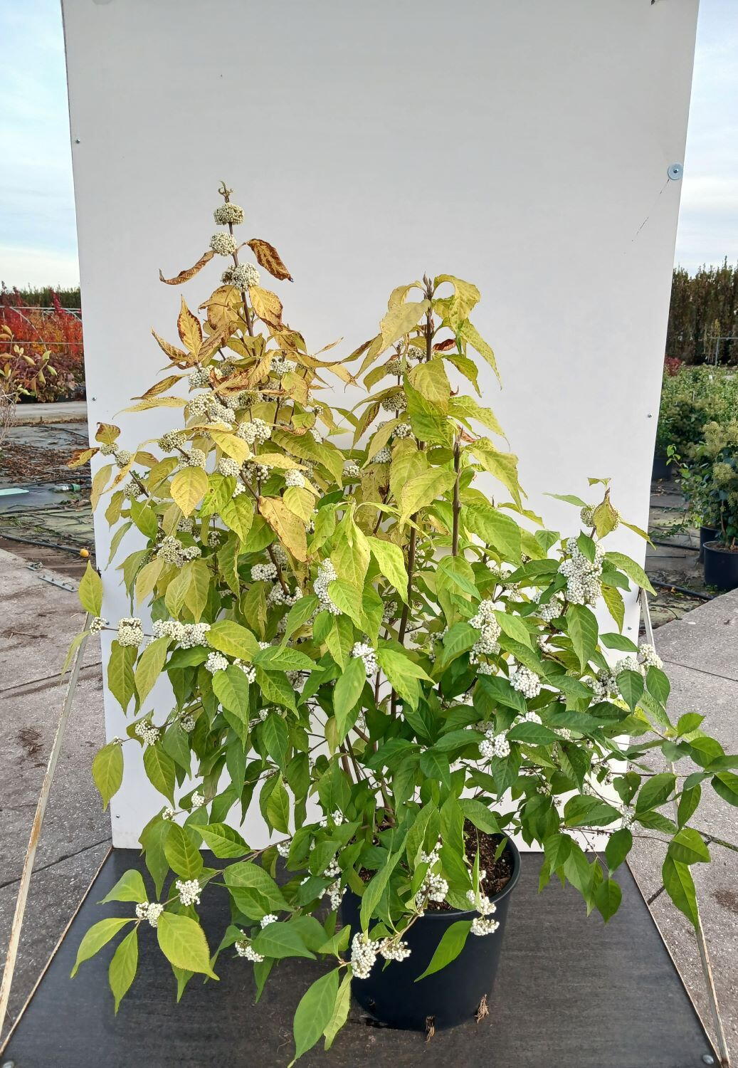 View plant size:Callicarpa Bodinieri Magical Snowqueen, also known as Beautyberry Magical Snow Queen, is a truly eye-catching deciduous shrub with year-round appeal. A standout member of the Callicarpa Bodinieri or Beautyberry family, it is especially admired for its clusters of small, pearl-white berries that light up bare winter branches after the beautiful autumn foliage has dropped. A relative newcomer, the Magical Snowqueen variety offers a striking contrast to more traditional purple-berried cultivars such as Callicarpa Bodinieri Profusion.