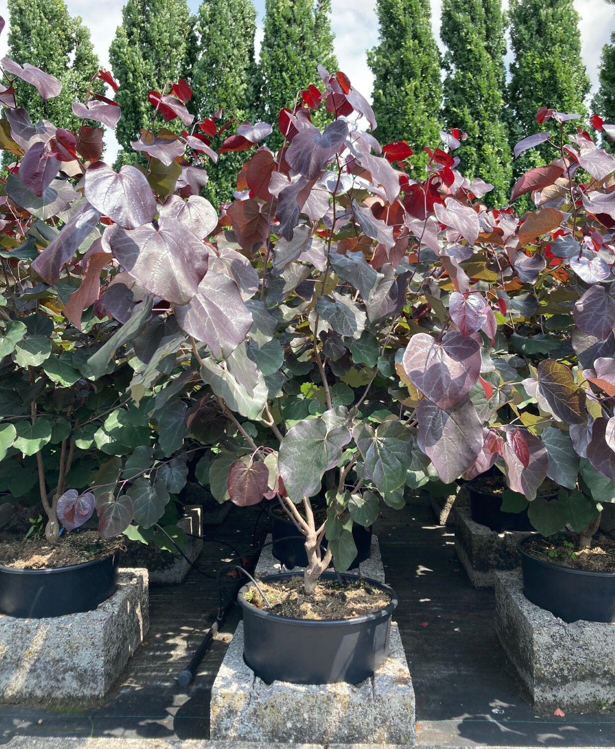 This variety - Cercis Canadensis Merlot – is considered to have a high level of drought and heat tolerance, more so than other Redbud varieties such as Cercis Canadensis Ruby Falls. In term of origins, Cercis Canadensis Merlot was bred in North Carolina USA as a hybrid of the varieties Texas White and Cercis Canadensis Forest Pansy.