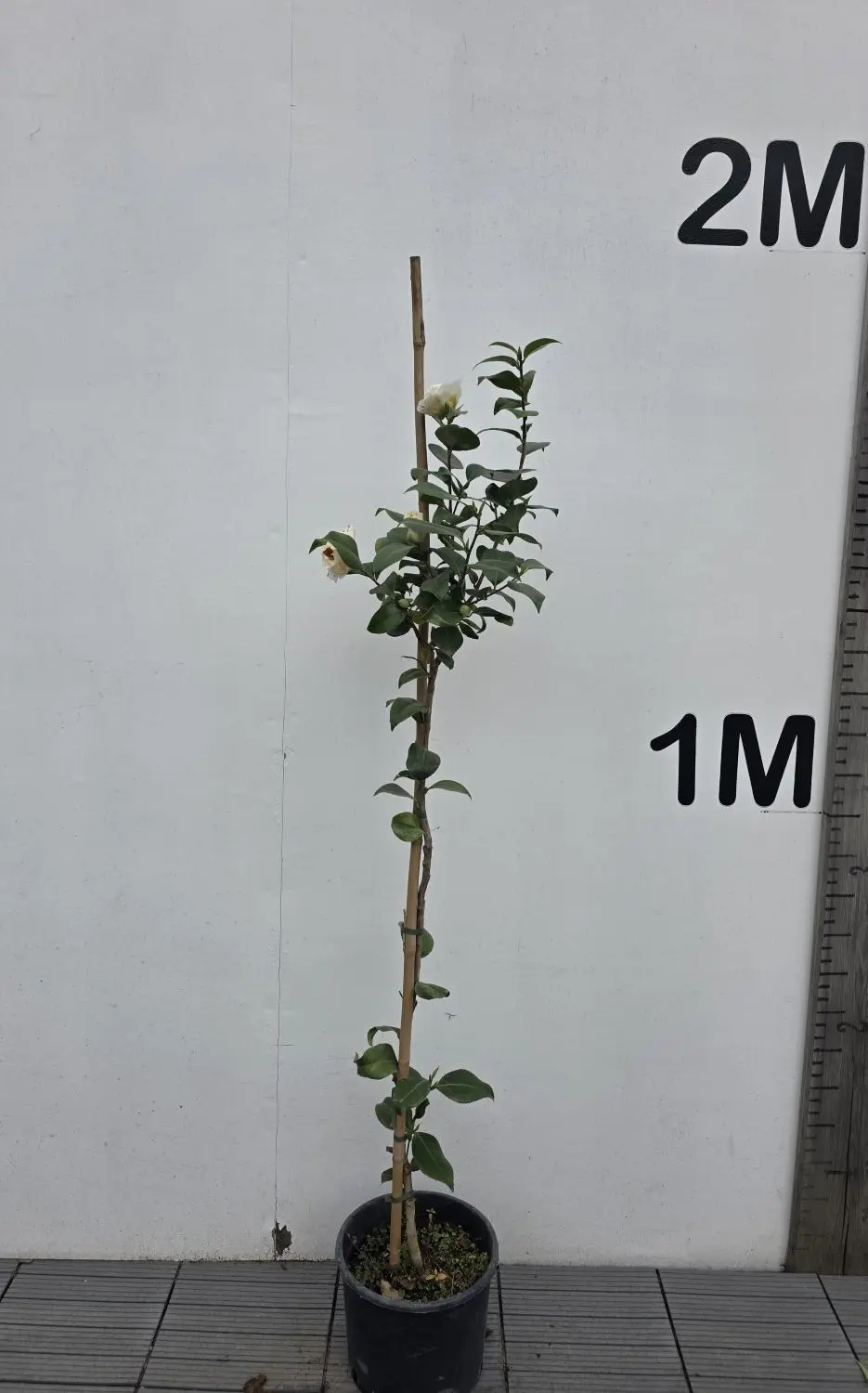 Hardy in most parts of the UK, Camellia Japonica Brushfield’s Yellow will grow to a mature height of 2.5 to 4 metres and spread of 1.5 to 2.5 metres in 10 to 20 years. Prune to deadhead spent blooms and remove dead or damaged branches after flowering is finished in mid-spring. It can also be trained into a small tree shape by removing lower limbs, or espaliered against a wall. Planted 1.5 metres apart, a row of Camellia Brushfield’s Yellow would be a stunning hedge in spring and provide year-round screening for privacy.