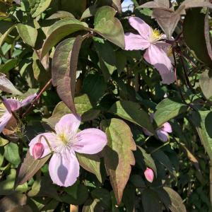 Clematis Montana Rubens is a sturdy climber and will readily scramble over walls and fences in a cottage garden rambling way. This climber is ideal if you want to cover an unsightly corner, it looks beautiful when clambering up into a large tree or over an arbour or pergola. Clematis Rubens thrives when planted in a sunny or semi shaded position.