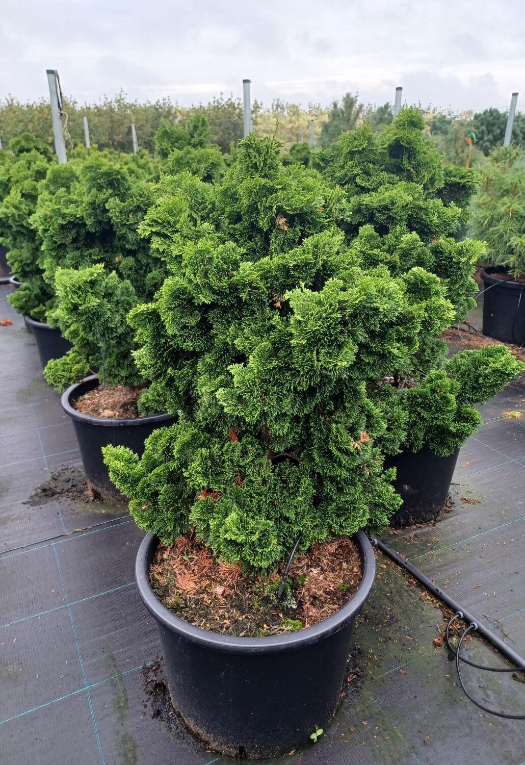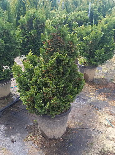 Chamaecyparis Obtusa false cypress trees are native to Japan and Korea. They are commonly called the Hinoki Cypresses and there are circa 250 varieties. Hinoki Cypress Nana Gracilis is a medium-sized dwarf cultivar with green foliage and concave sprays that grow upward in waves. It’s a low-growing variety that forms an irregular globe. Hinoki Cypress Nana Gracilis is an RHS AGM winner. It's tough, beautiful and has stood the test of time greening our gardens for the past 100 years.