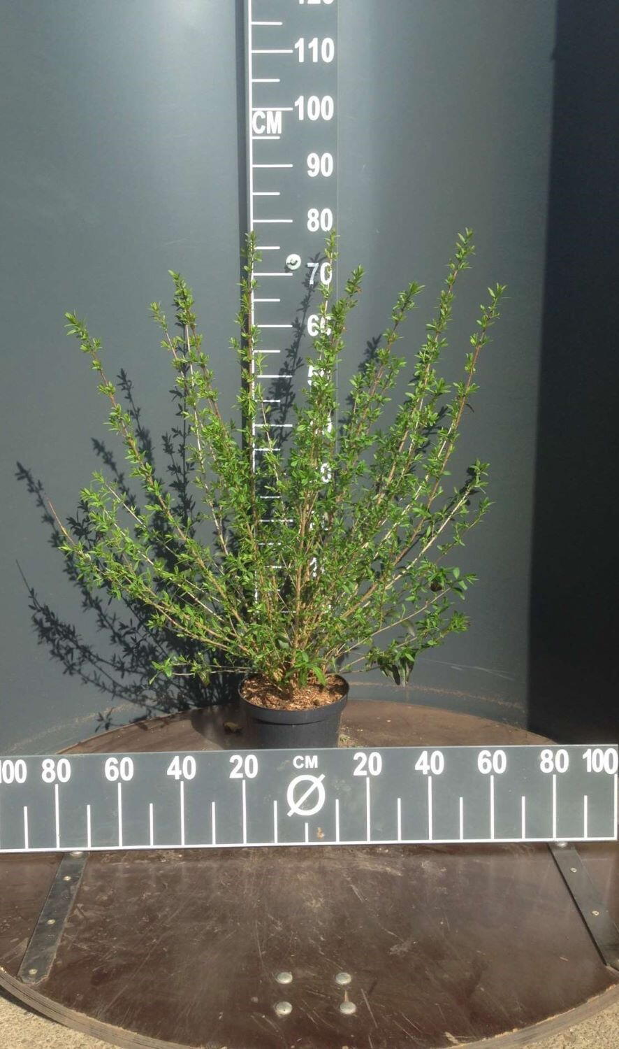 Low-growing Ligustrum Vulgare Lodense will reach about a metre in height and spread. It takes well to clipping so you can keep it much shorter.