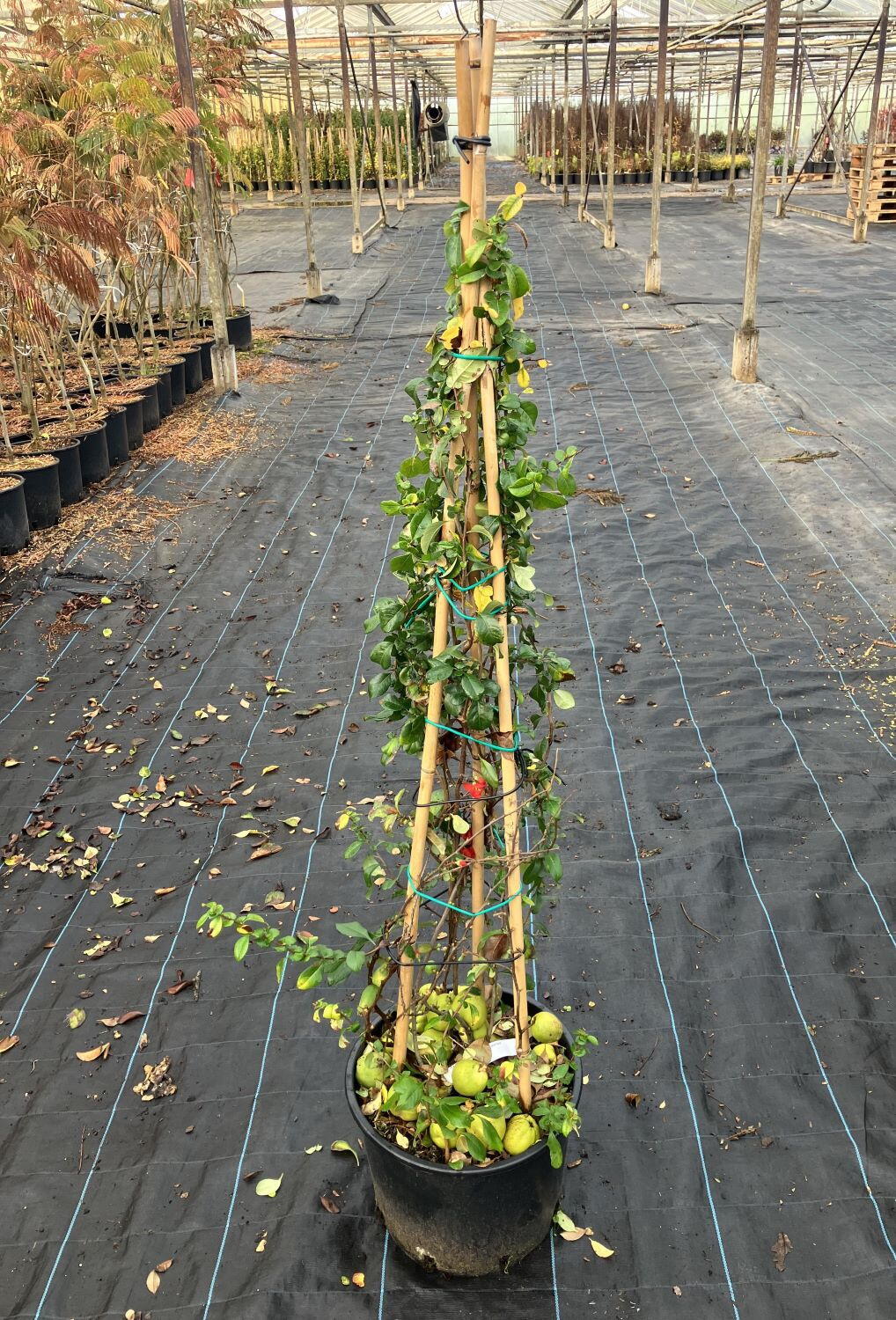 Japanese Quince Crimson and Gold is a compact variety. The expected maximum height for this cultivar is approximately 1 to 1.5 metres, whereas its spreading habit leads to a width of 1.5 to 2.5 metres.