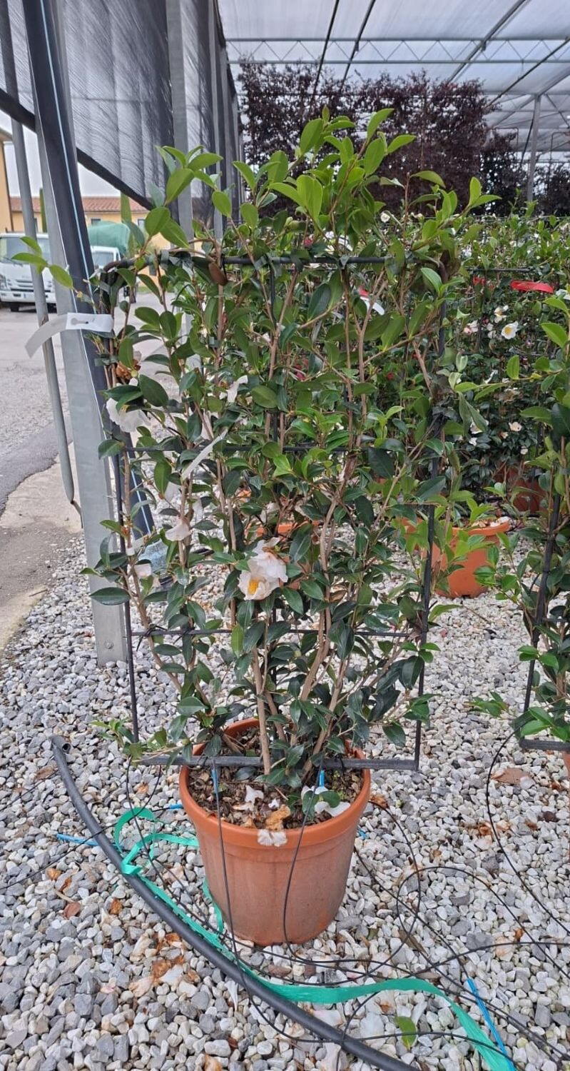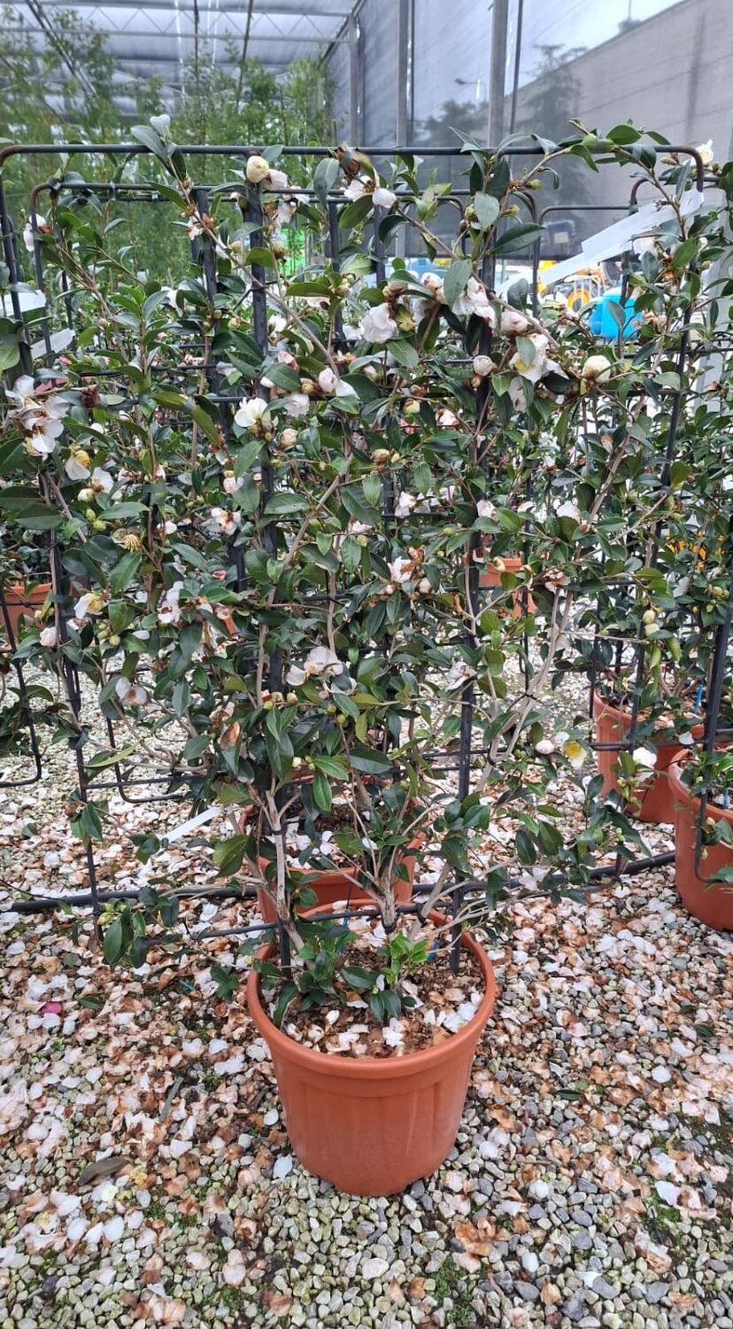 Camellia Sasanqua is a species of evergreen camellia native to China and Japan. These camellias form a large shrub or a small tree and generally flower any time from September to January depending on the variety. This species is popular for its profuse flowering habit and attractive glossy evergreen foliage.