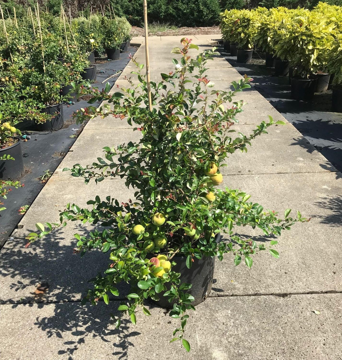When planted en masse, Japanese Quince Jet Trail makes a great flowering hedge. The broad, spreading habit and spiny, tangled twigs make it a perfect choice for hedges and borders, but it’s also suitable for espaliering. Besides being a highly decorative addition to your garden in the springtime, Flowering Quince’s twigs can be used for centerpieces- when cut, the bare stems adorned with delicate white flowers make elegant bouquets.