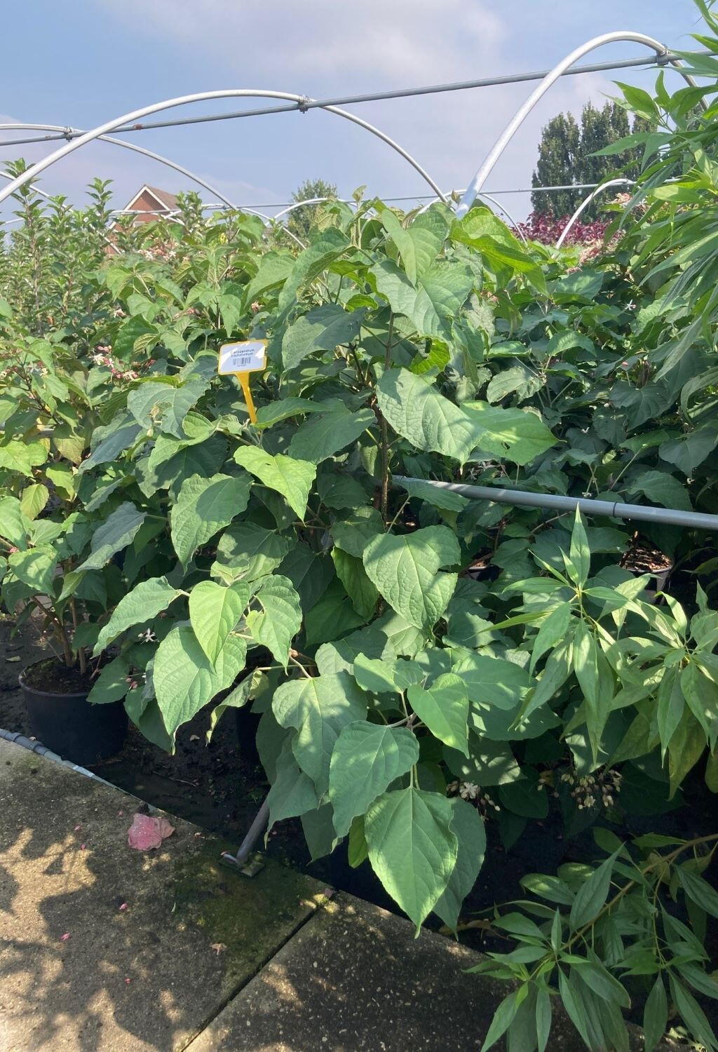 Clerodendrum Trichotomum shrubs are hardy to around -10 but it may die back during very cold months. To get the very best display of flowers and berries it is best to plant in full sun with a south facing aspect. It will grow in partial shade but the display may be slightly less.