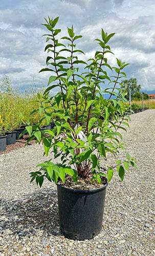 View plant size:Deutzia Magnifica is a deciduous shrub with tall arching branches and stunning sprays of tiny double white flowers in spring. It is best planted in a mixed border and is a very suitable plant for growing in pots.