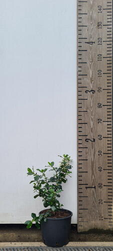 Escallonia Iveyi produces large dark green glossy leaves that grow thickly. In July through to September, sometimes earlier or later if the weather is mild, Escallonia is smothered in bright pure white flowers that attract all essential garden pollinators. The blooms are bell-shaped, abundant and produce a glorious sweet scent. Escallonia plants are perfect hedging shrubs, but only Escallonia Iveyi boasts clusters of pure white flowers throughout the summer. During winter the evergreen leaves can develop an attractive bronze tint. Escallonia Iveyi is a fast-growing hedging shrub best suited for larger areas as is it will reach three by three metres if left unchecked.