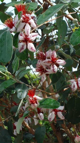 Why buy this tree?  Stunning flowers, edible fruit and evergreen foliage make this tree an unusual and versatile alternative to an olive tree. More photos of the Feijoa fruit and flowers click this link feijoatrees