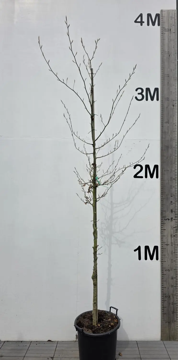 The Fagus Sylvatica is often referred to as the Common Beech or European Beech tree. These particular specimen Beech trees have been trained as a full standard trees with a single trunk or clear stem. These Fagus sylvatica Full Standard trees have a single straight or clear stem trunk with no lower branches that is at least 180 cm tall from the top of the roots to the start of the crown. The girth diameter also plays a role. The lower clear stem makes these full standard beech trees ideal for screening above a fence, wall or even a hedge. Maintaining the shape is not difficult, requiring a prune once per year.