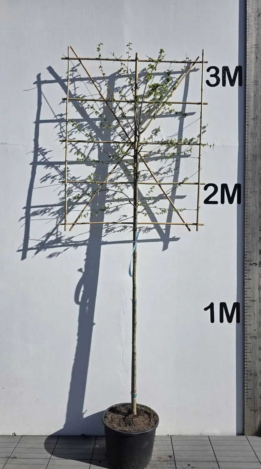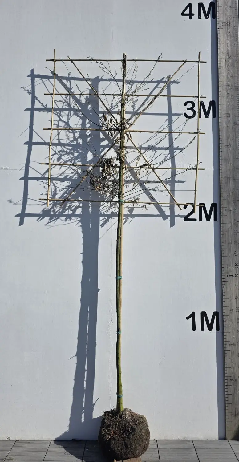 Carpinus Betulus Pleached Trees commonly known as Hornbeam can make a wonderful contemporary green backdrop to other smaller trees and shrubs, particularly when shaped as pleached trees. These Carpinus Betulus Pleached Hornbeam Trees are trained on a clear stem onto tall bamboo frames and used as a contemporary stilted hedge or screen above the fence line. Grown in this way, Carpinus Betulus Pleached trees can also be used as a stand-alone panel to create a backdrop to a special garden ornament, urn or sculpture.