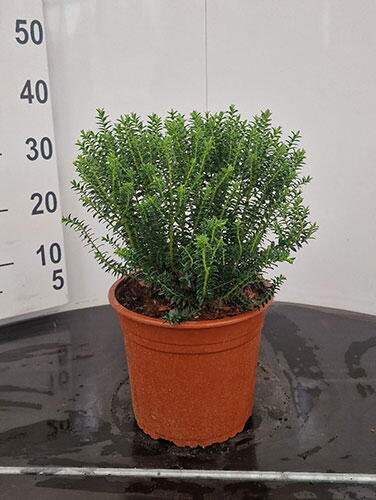 One of the most appealing features of Hebes is their textured, evergreen foliage and perfectly rounded form. Contrary to the popular belief, the bushy, dome-like habit of this cultivar requires no pruning to keep its attractive form. Easy to care for, Hebe Rakaiensis requires little maintenance to stay healthy and good-looking.
