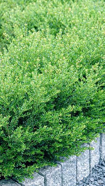 Japanese Holly Kinme responds well to trims and holds its shape for months. It suits the front of a border where it protects against soil erosion. It’s a good alternative to box in blight-prone areas and makes a sturdy and attractive low growing hedge or divider for a herb garden.