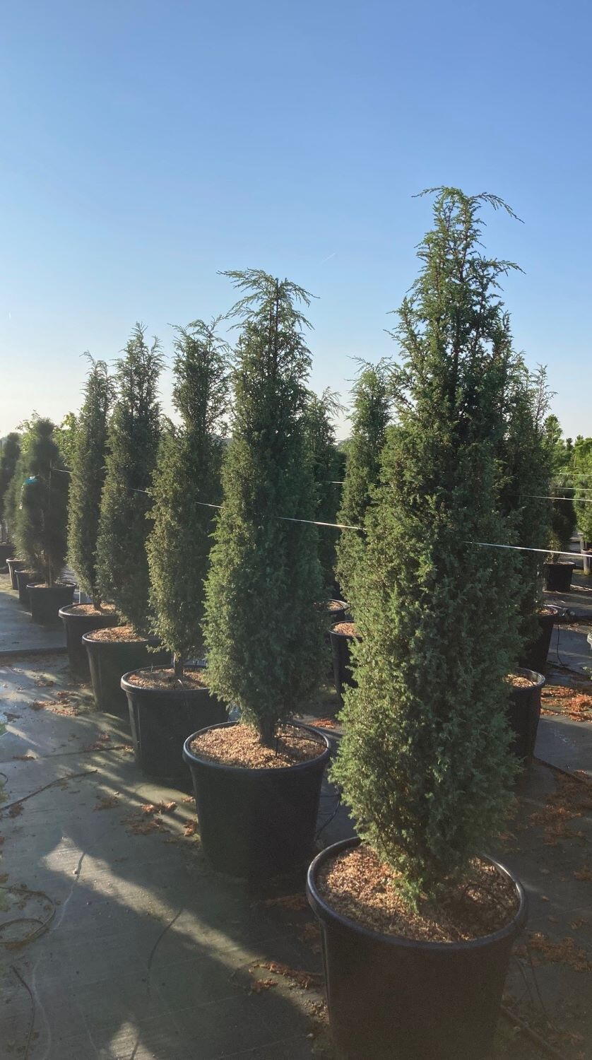 Irish Juniper is a similar but slightly tougher alternative to Italian pencil cypresses and is perfect for landscaping ornamental Italianate or formal UK gardens.