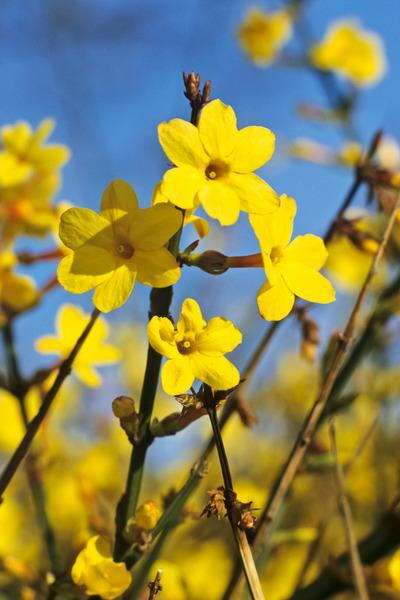 Each winter remember to mulch thickly around the base to encourage fresh healthy shoots and a good amount of growth that year. Cut back any excess growth after flowering, cutting back to a strong bud. If you need to manage its height, cut established shrubs back by a quarter. Regular pruning keeps winter jasmine healthy and encourages bushy growth rather than vertical height.