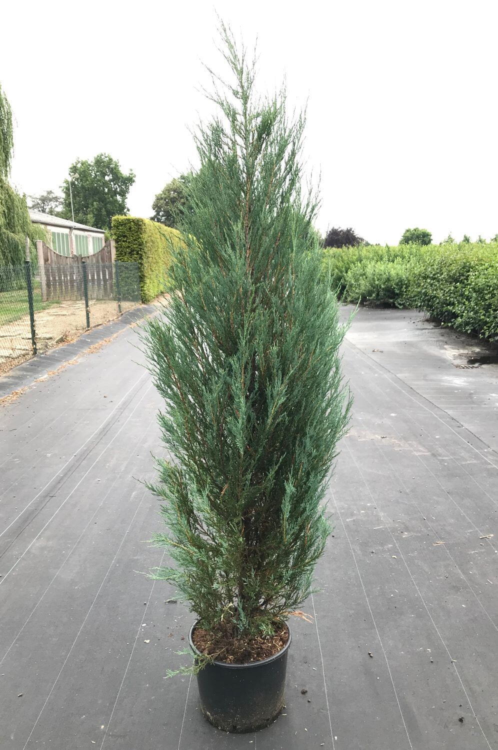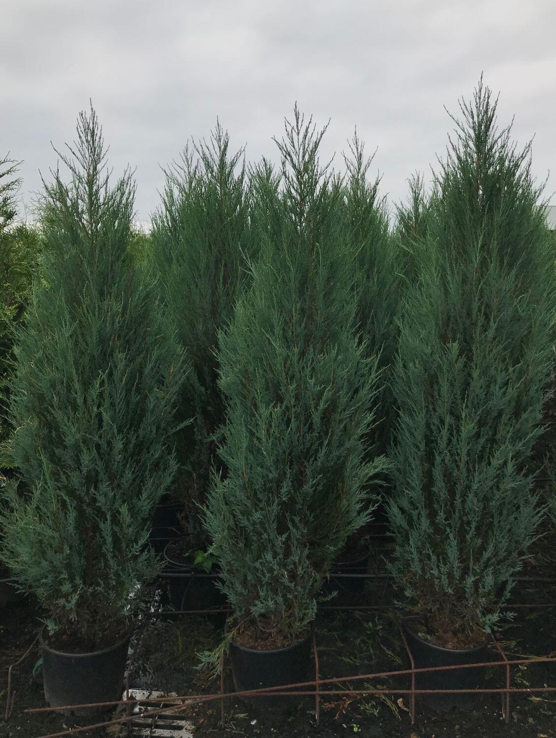 In 10 years, Juniperus Scopulorum Blue Arrow will typically reach around 2.5 metres in height with a width of only 0.5 metres, creating a strong vertical accent. Over time it may grow taller, but it always maintains its slim, columnar silhouette.