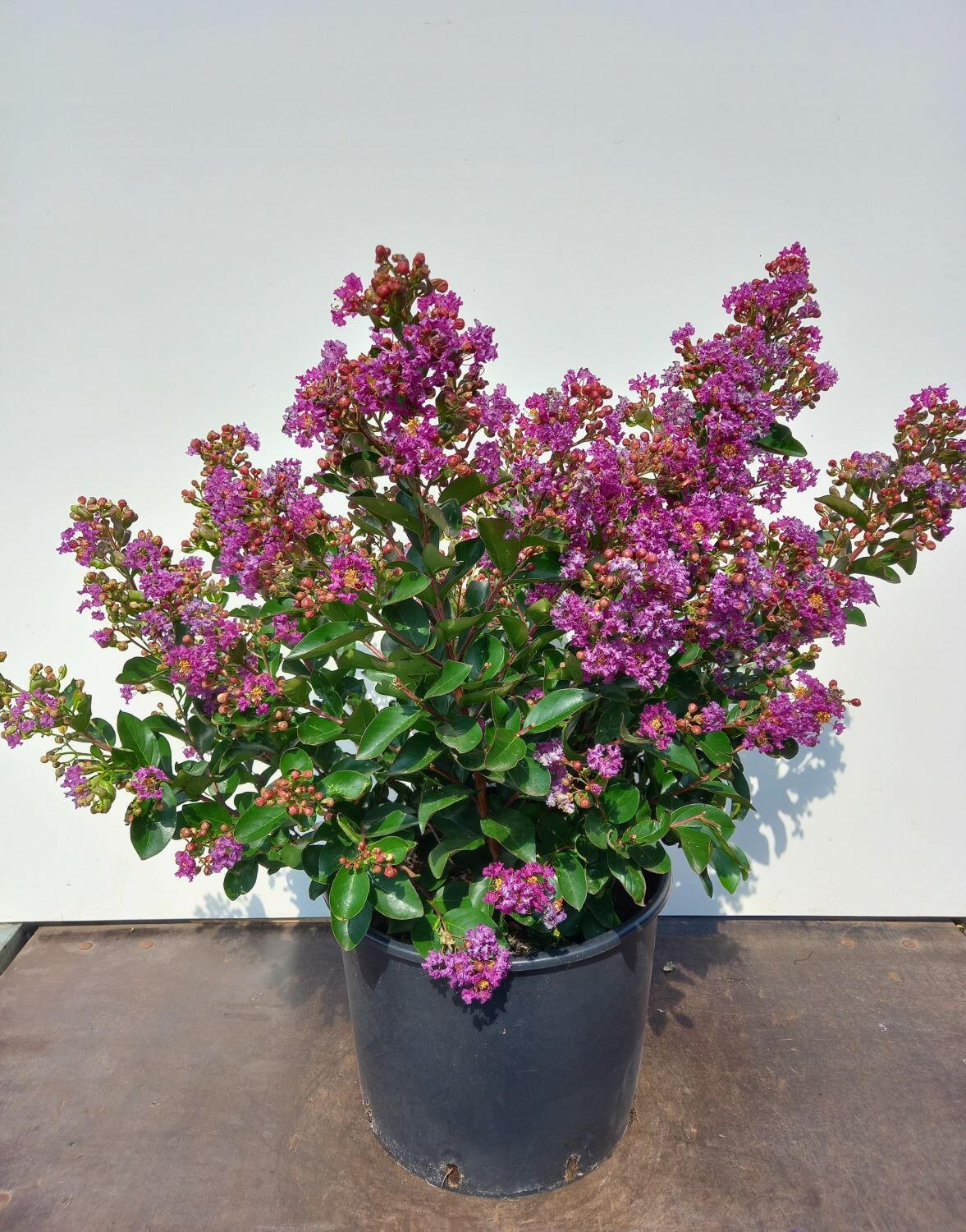 Violet Crape Myrtle enjoys full sun and flowers best when it’s grown in a hot spot with plenty of shelter. Grow yours against a sunny wall or fence line for the best effect. Lagerstroemia Indica is not fussy about soil type but will grow faster in moist and fertile but well-drained conditions. There is no need to prune Lagerstroemia, but if you need to restrict the height or width cut back branches in winter before foliage begins to appear. In spring apply a thick layer of mulch around the roots to provide nutrients for a healthy growing season. See also Lagerstroemia Indica Grassi.