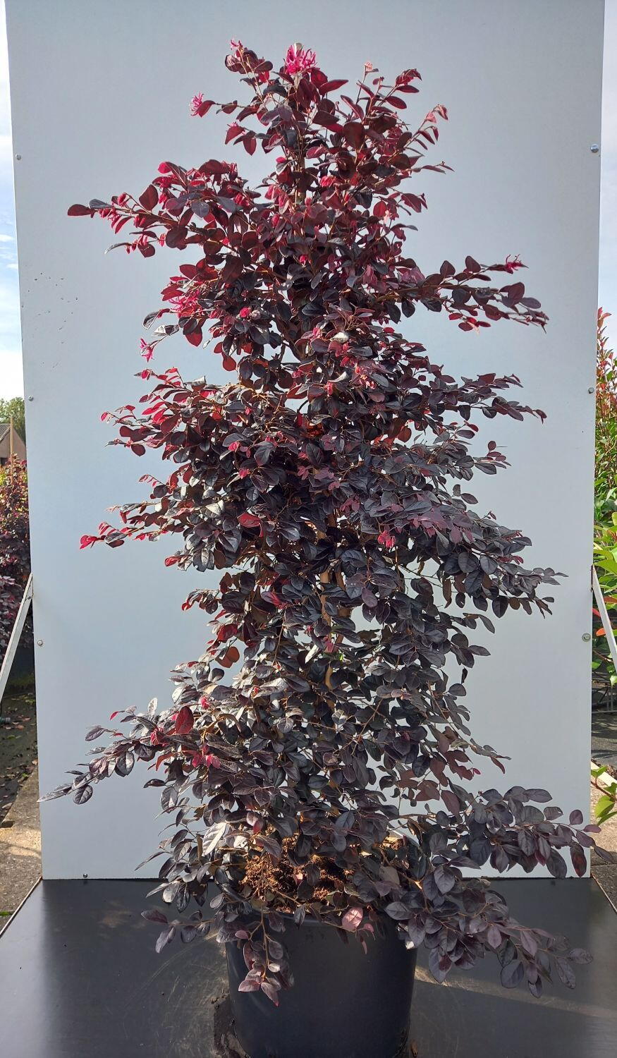 Loropetalum Chinense Black Pearl will grow in a well-watered and fed container where it boosts a dull patio or paved front garden.