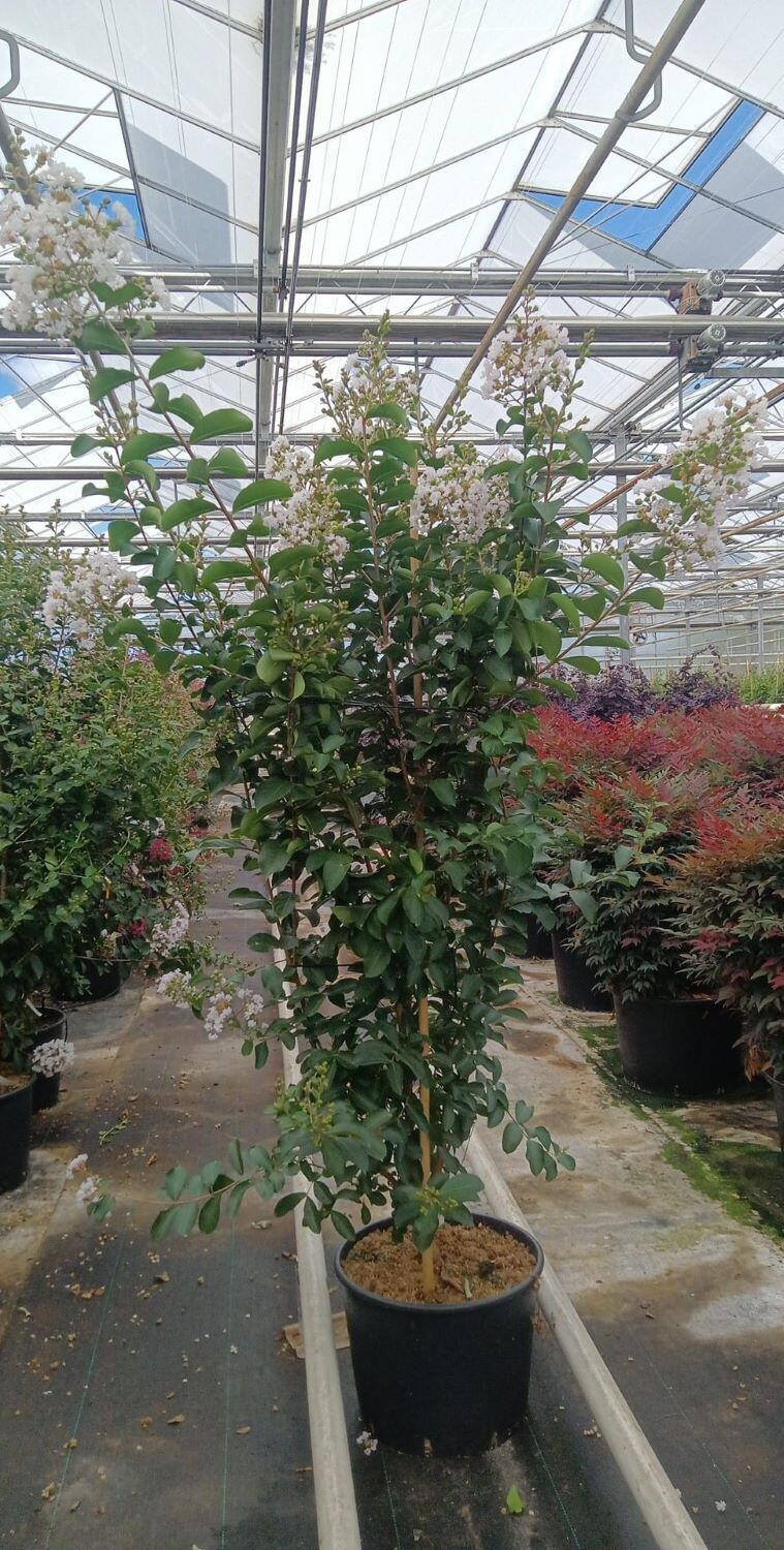 Lagerstroemia Neige d’été is a compact, middle-sized shrub that will reach between 2-4 metres in height and spread to 2.5 metres over 10-20 years. They can be kept smaller with an annual prune.