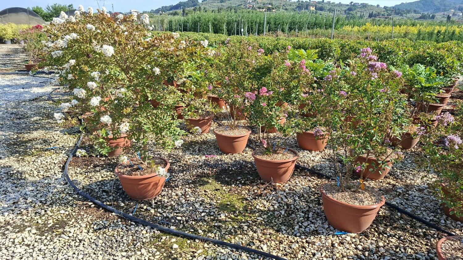 Lagerstroemia Indica Nivea will reach a maximum height of three metres and spread over two metres. In hot conditions they may grow a little larger but are easily kept smaller with pruning.