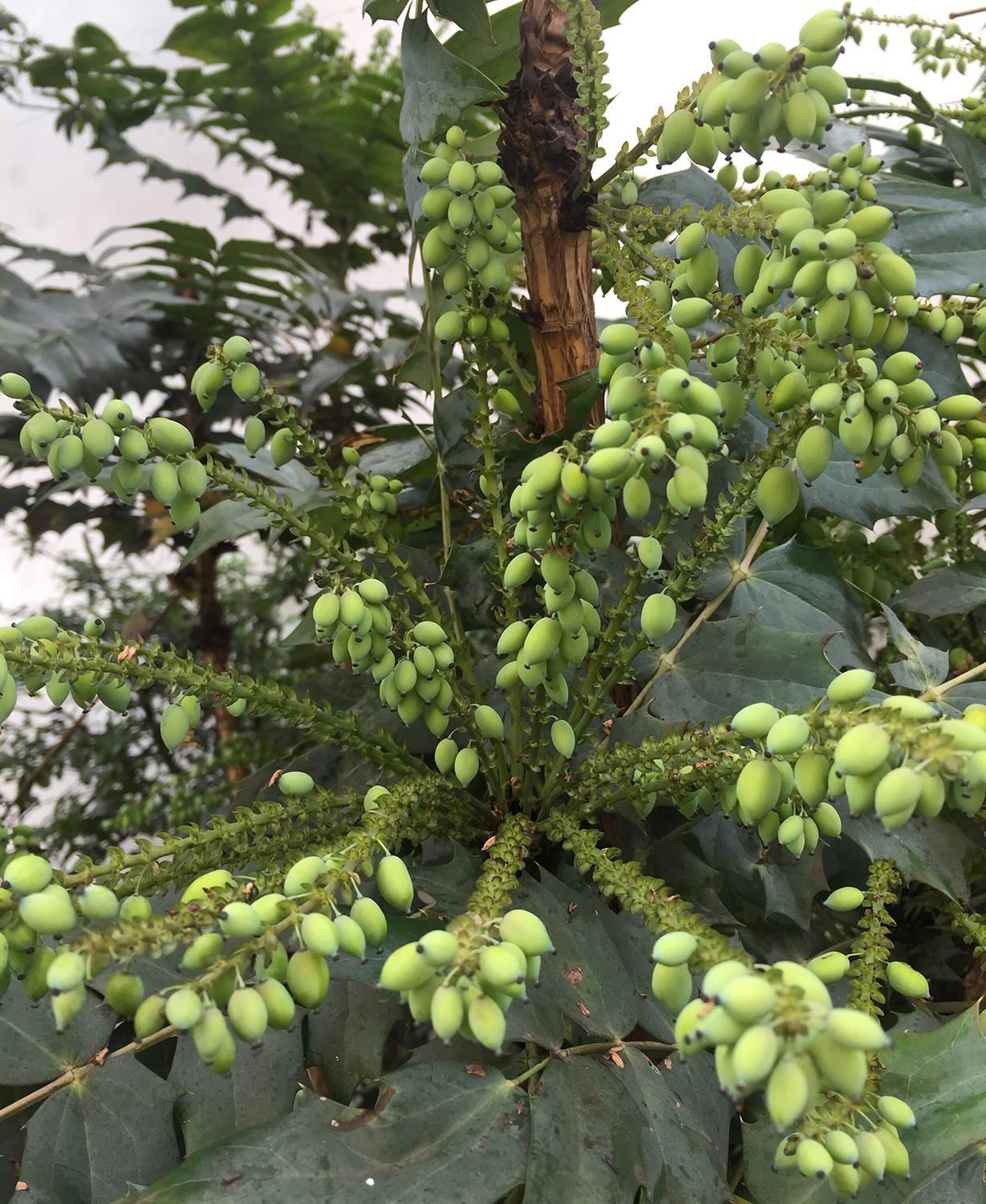 This Mahonia hybrid is also known as Oregon Grape Charity. It will eventually reach a height of around 2 metres square over time.
