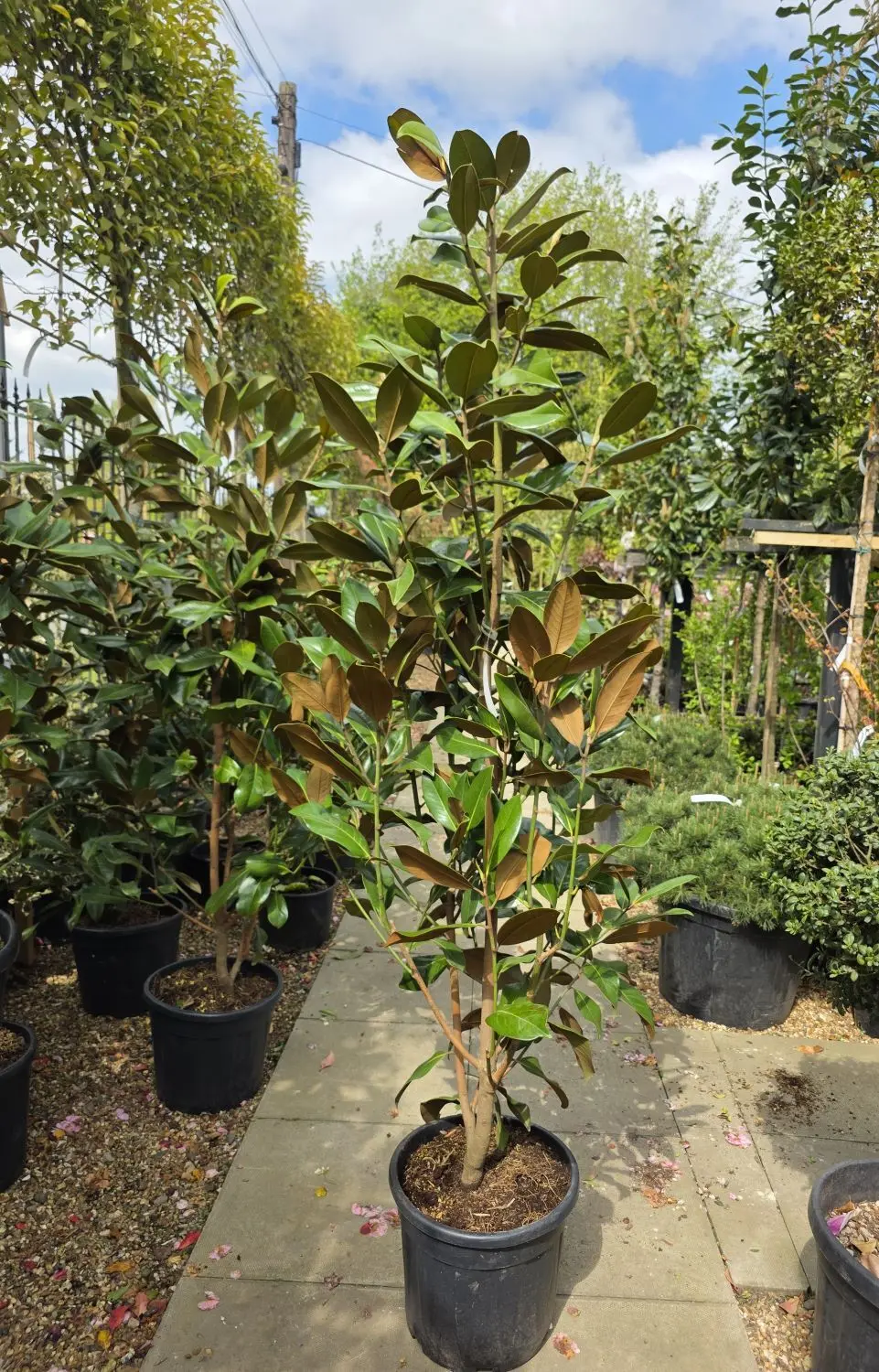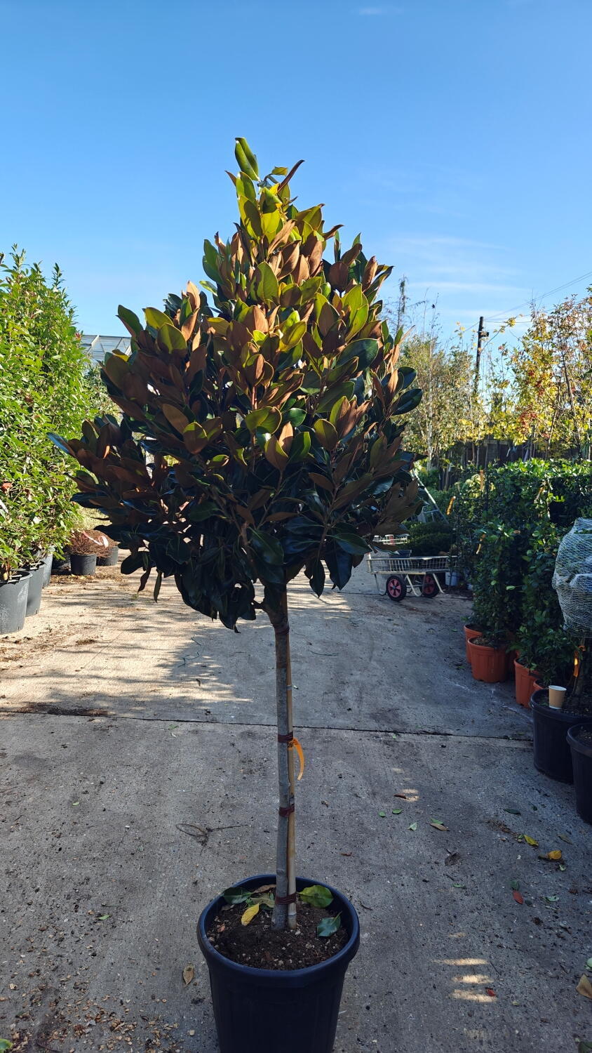 The appeal of the magnolia tree is timeless. The Magnolia Grandiflora Little Gem is a dwarf tree version of the classic large and sprawling magnolia grandiflora. The tree’s petite compact growth makes it an ideal choice of ornamental evergreen tree for a small garden setting. These Magnolia Little Gems have been trained as three-quarter standard trees on clear stems.