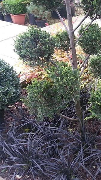 Used often to create an edge, this small low-growing black mondo grass gives a contemporary simple look.