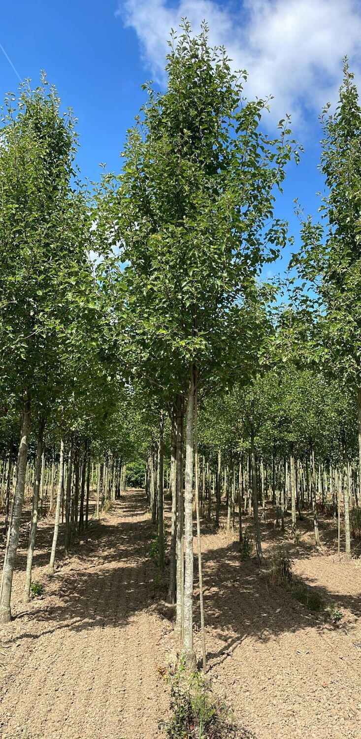 Pyrus Calleryana Chanticleer, or Chanticleer Pear, is an extremely versatile and attractive landscaping tree. Adaptable to a variety of locations, with long-lasting foliage and beautiful spring blossoms, this deciduous tree is a great choice for UK gardens! These particular specimens have been shaped over time as full standard trees on a clear stem. We recommend using them for above fence or hedge screening or in smaller gardens as an ornamental tree or trees. You may also be interested in our Pleached Pyrus Calleryana Chanticleer.