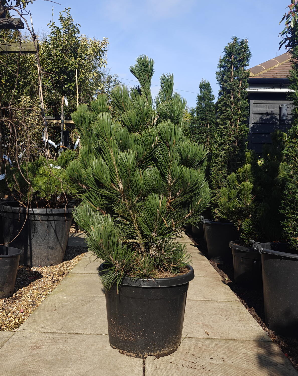 Bosnian Pine Malink is ideal for rockeries, alpine-style planting, gravel gardens, and mixed conifer borders where a compact, upright evergreen is needed for structure. Pinus Heldreichii Malink also works well as a punctuation plant in contemporary designs, where its narrow pyramid shape can be repeated to create rhythm along paths or within planting grids. In smaller gardens, Bosnian Pine Malink provides the presence of a conifer without the eventual bulk of larger pines, and it looks particularly effective near stone, timber, or hard landscaping where its crisp outline adds contrast. Pinus Heldreichii Malink is also suitable for larger containers in full sun, where its drought tolerance and tidy habit make it a low-fuss feature.