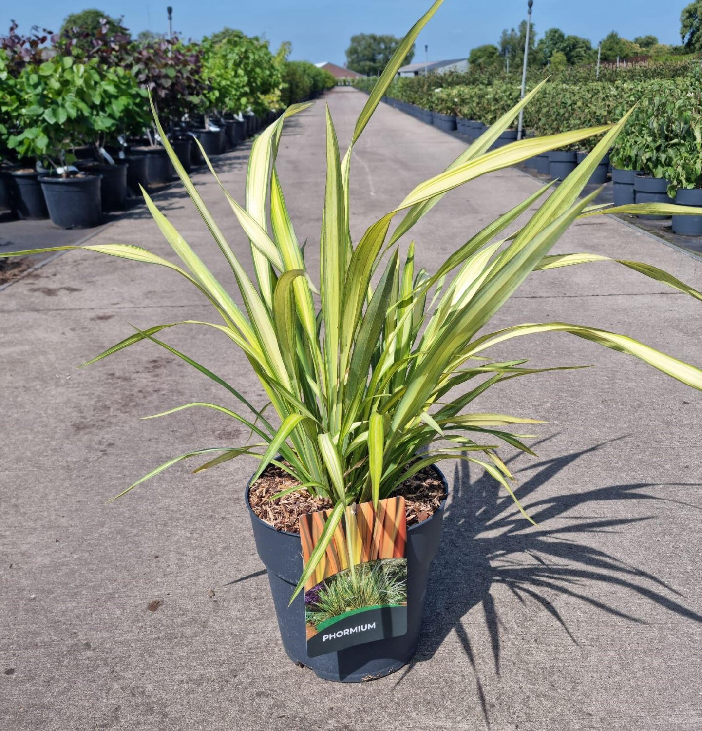Phormium Yellow Wave is commonly known as the Flax Lily and is part of the group of plants known as New Zealand Flax. These ornamental grasses are very architectural and can add real dynamism to your garden design. Particularly to contemporary style gardens.