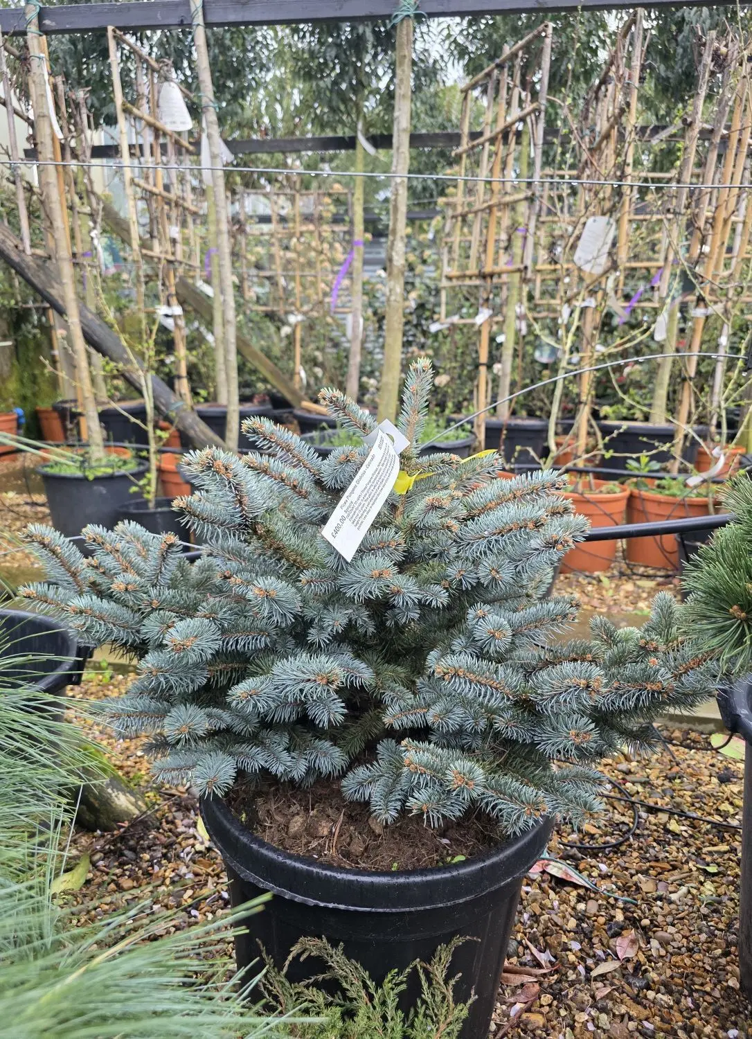 View plant size:Picea Pungens Globosa, more commonly known as the Colorado Spruce, is a low growing compact conifer. Max height 1.5m which can take over 15 years. This plant is sold at a mature size around 80-100cm height.
