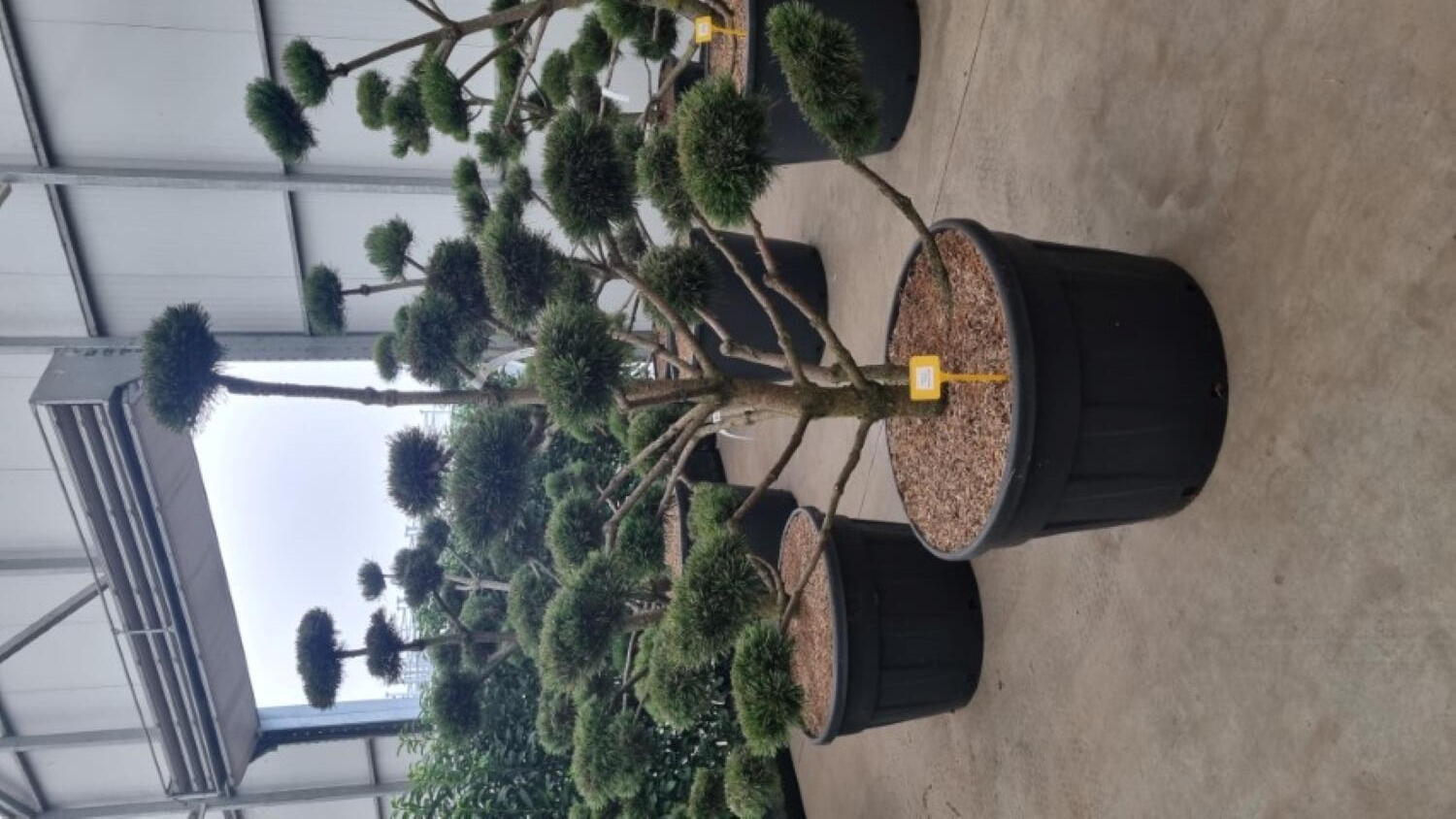A dwarf variety of the Pinus Mugo, Nana cultivar has short, dark green needles with the slightest tinge of blue. Its dense, evergreen foliage forms a spherical shape, making this cultivar look like a miniature conifer egg. Unlike the standard Pinus Mugo, this variety stays petite even when fully mature. With a slow growth rate, this compact conifer’s ultimate height is around 80 centimetres to 1 metre, and the ultimate width around 1 metre.