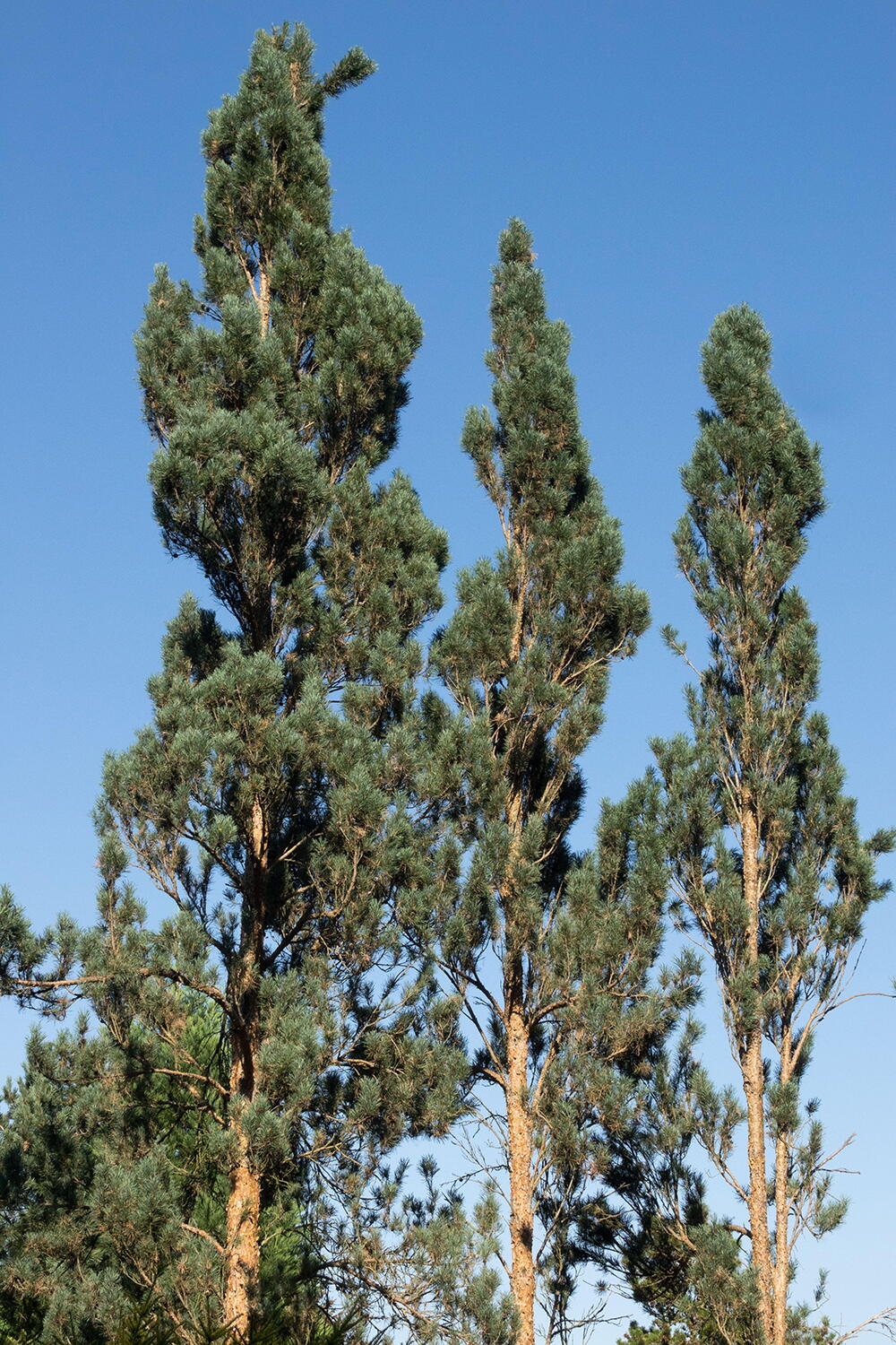 The Columnar Scots Pine prefers full sun and a well-drained soil. Pinus Sylvestris Fastigiata is adaptable to a broad range of soils but dislikes waterlogged conditions. Water young plants through dry spells until they are established. Pruning is rarely required; simply remove any dead or damaged branches and avoid heavy heading to maintain the natural columnar form.
