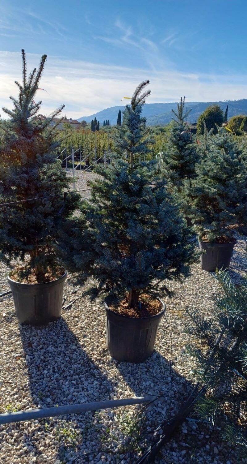Ideal for the spotlight, Fat Albert Spruce is commonly used as a statement tree. The natural form of a pyramid and showy, year-round foliage make this conifer great choice for a patio or a front yard, where it can enjoy the attention it deserves. Suitable for mass planting, it makes a spectacular hedge, its dense and bluish-gray foliage serving as a windbreak and providing privacy throughout the whole year. The interesting colour of the foliage and the compact habit also make Fat Albert Spruce a popular choice for a Living Christmas tree.