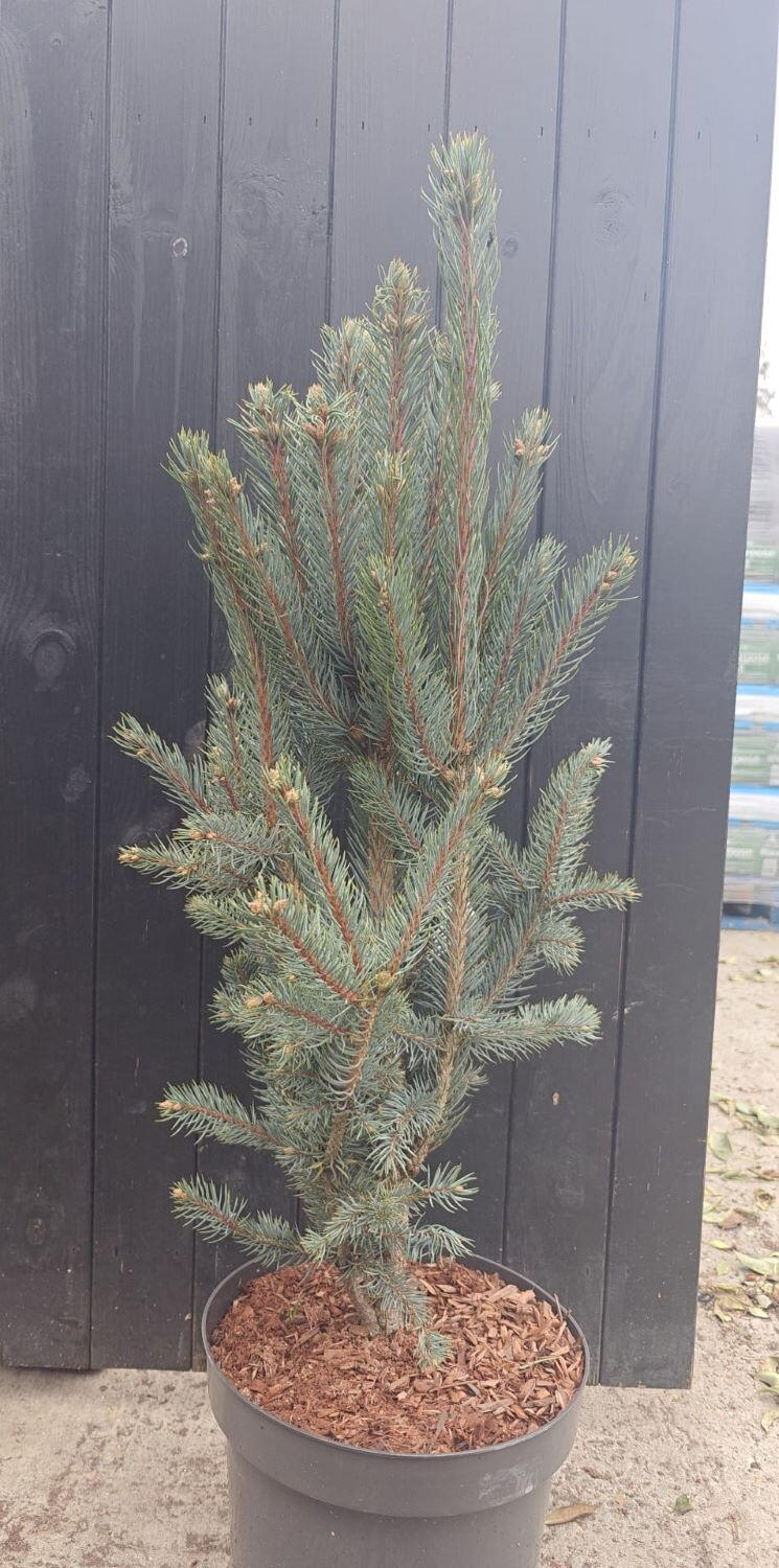 View plant size:Picea Pungens Iseli Fastigiate (Colorado or Blue Spruce) is a striking conifer with evergreen steel-blue foliage that reaches a slender 75 centimetres in width. It’s an excellent choice for formal Italianate gardens, doorsteps, and adding vertical height without width.