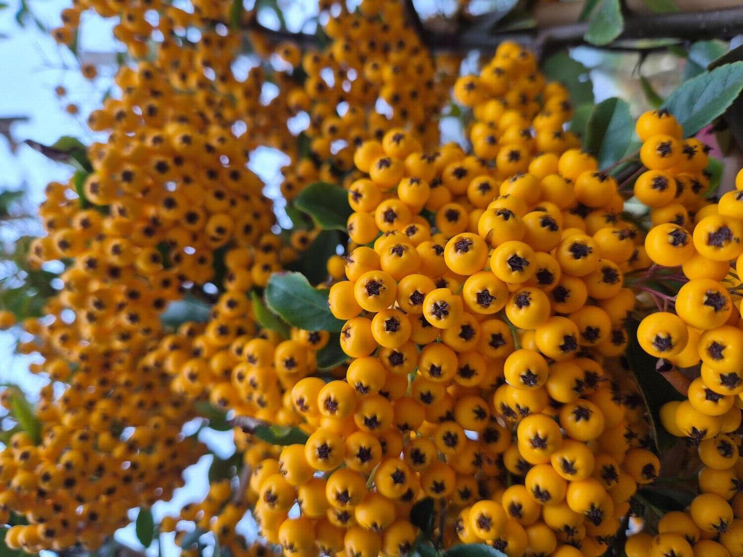 They can reach heights of approx 4 metres - if you are planning to make into a hedge, plant 3 plants per fence panel. They will soon grow into a lovely dense wall of green, the adding benefit is that Pyracantha are hugely attractive to wildlife, the white flowers are loved by bees and birds adore their golden berries.