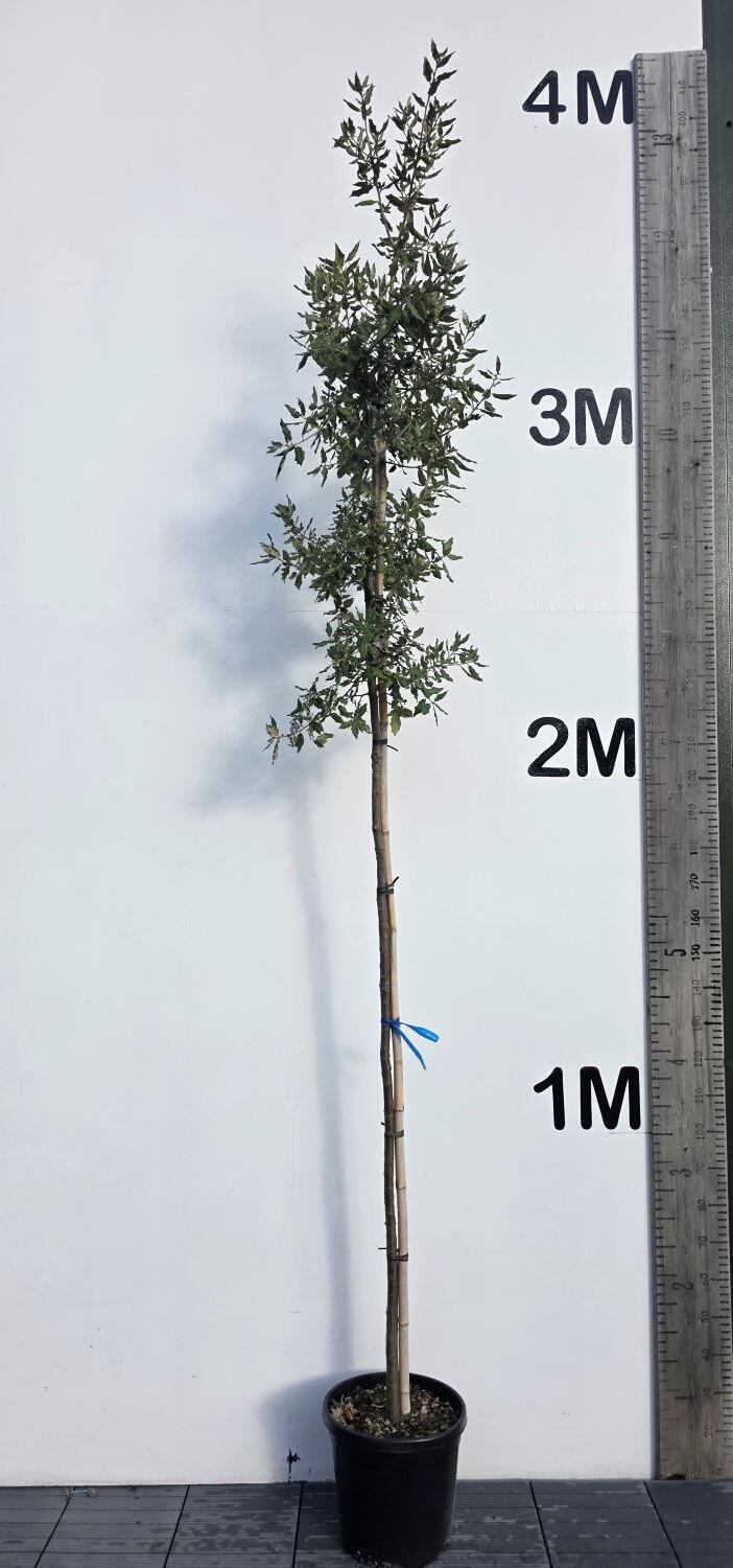 Quercus Ilex Full Standard is a large specimen tree - it has dark glossy silvery green leaves and a darker trunk or stem.