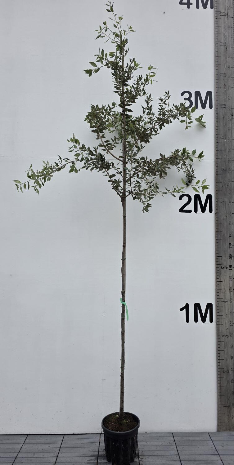 Quercus Ilex Full Standard is a large specimen tree - it has dark glossy silvery green leaves and a darker trunk or stem.