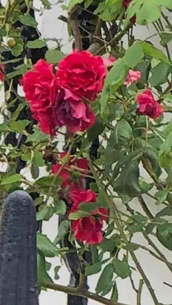 Hardy in all of the UK and northern Europe, Rose Crimson Shower will grow to a mature height of 1.5-2.5 metres and spread of 2.5- 4 metres in 5 to 10 years. Prune and train after flowering has finished, as they flower on wood from the previous year. Cut back all the stems that had flowers to an unflowered shoot, while leaving growth from the current season intact. Horizontal stems will produce more blooms than vertical ones. With few thorns, Rosa Crimson Shower is easy to work with!