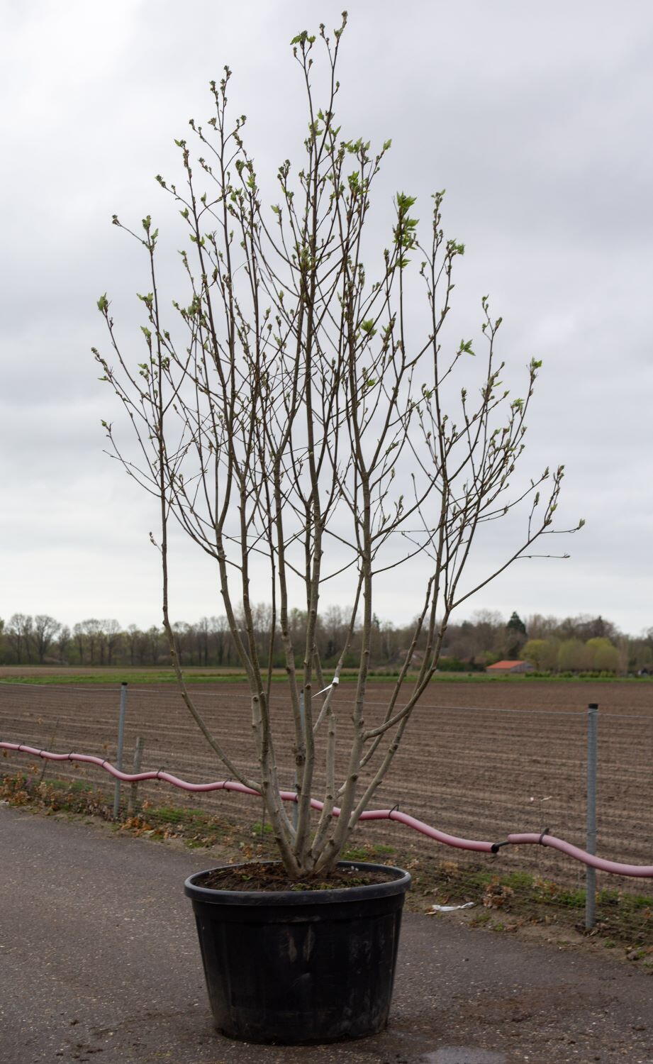 With a broad, bushy habit, this deciduous tree can achieve a maximum height of 12 metres. As it matures, this multi-stemmed tree will take on a slightly fan-shaped form, with the width at its base being over 8 metres wide.