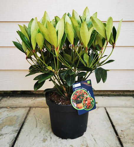 Skimmia Japonica Rubella is a stunning low growing evergreen plant, very popular around Christmas-time. Its red buds start to emerge from late autumn and last until early spring when they change to white flowers. The flowers then last until late Spring. The rest of the year the evergreen foliage is bushy and dark green.