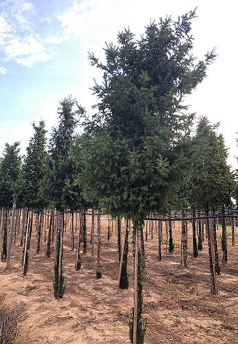 Taxus baccata is also known as a yew tree. The evergreen yew tree is one of the most popular choices thanks to its versatility. Yew is often used as a hedge, for topiary or as a stand-alone tree, creating a focal point when mature. These Taxus Baccata Full Standard Yew trees look amazing with their clear-stemmed trunks and bushy tops, standing almost 3 Metres tall. These mature, full standard trees have a universal use; they can be placed on either side of the front door or entry gate. They work well as a stand-alone tree. Or they can be planted in a row to alongside the fence, as an above-fence screen, to screen off unwanted views and give enhanced privacy.