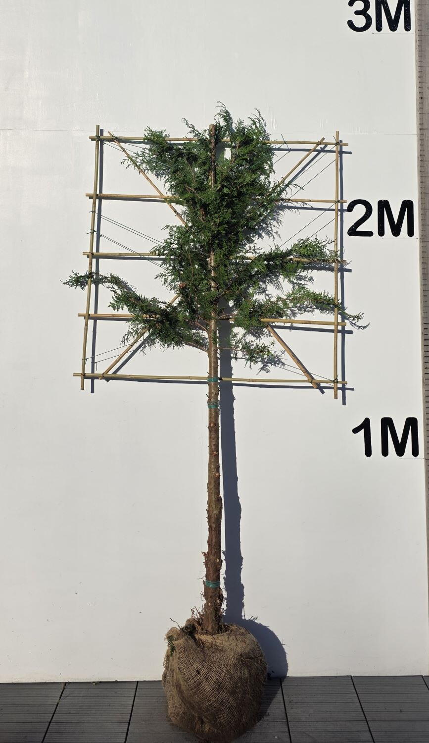 These Thuja Plicata Pleached Trees are a pleached tree-on-stilts version of thuja plicata, the western red cedar tree that's often used for hedging. It’s an evergreen, fast-growing conifer that’s popularly grown as a handsome specimen tree. Our pleached version is designed to create a tall privacy screen that leaves room beneath its high crown.
