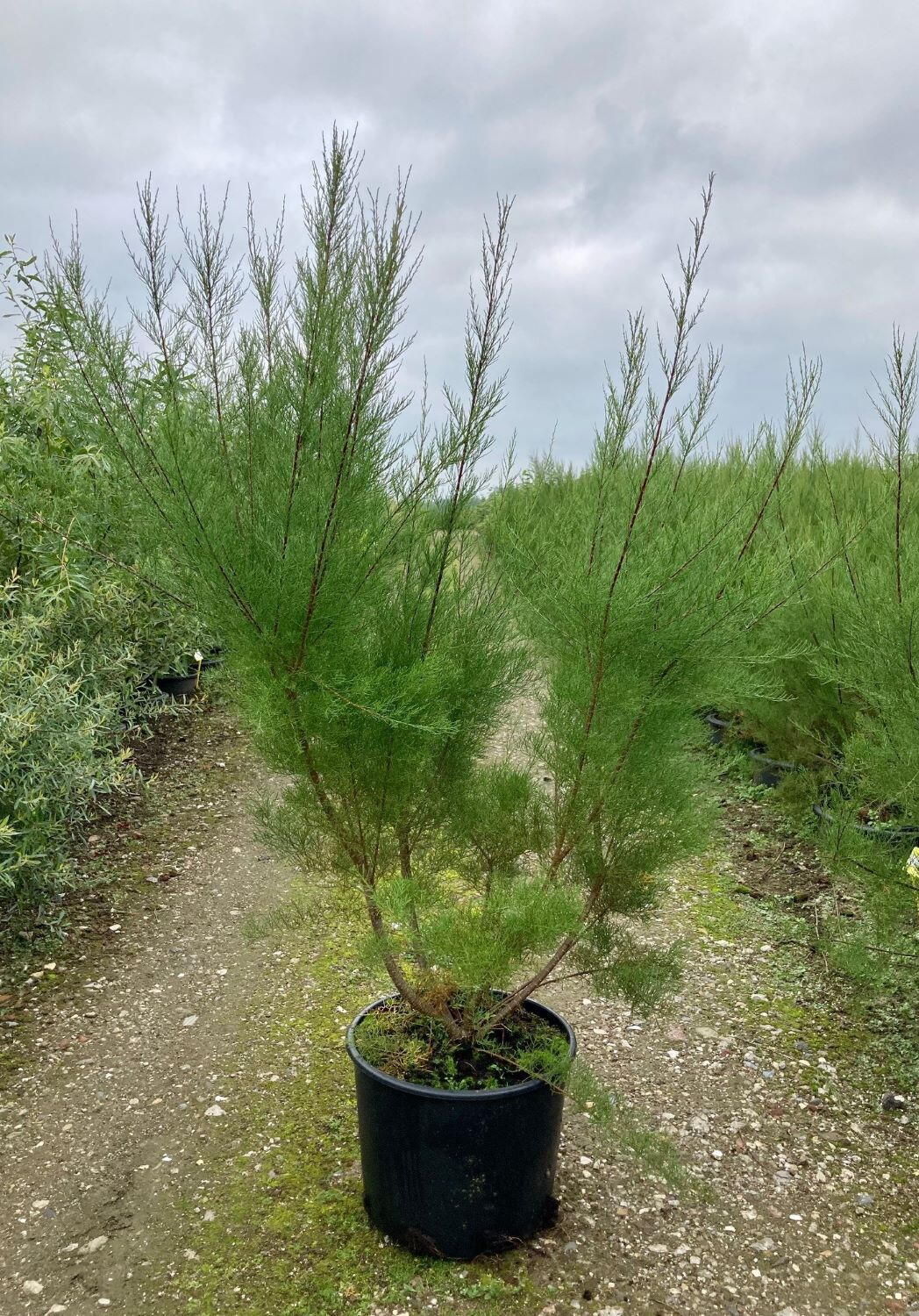 The classic use of Tamarix ramosissima Rubra is as a windbreak hedging in coastal regions, especially Cornwall, but it is a more versatile plant than that! A single specimen makes an excellent shrub or small tree in a mixed border in a small city garden, where its feathery appearance can be shown to advantage, and pruning can keep it from growing out of bounds. On a dry slope where erosion is a problem, Red Tamarisk can be a planted and allowed to spread with little or no annual maintenance required.